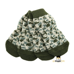 100% Cotton Non-Skid Dog Socks - Green Camo - Protective Dog Socks - XS to XL