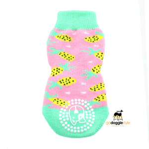 - 100% Cotton Non-Skid Dog Socks - Pink Pineapple - Protective Dog Socks - XS to XL