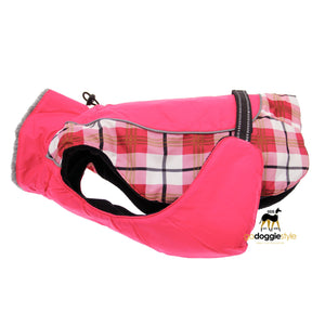 Alpine All-Weather Waterproof Dog Coat - Raspberry Plaid - Warm Fleece Lined Winter Dog Coat Jacket - Sizes XS to 5XL - Dogs 3 to 150 lbs