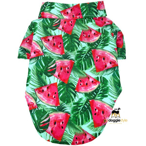 100% Cotton Hawaiian Camp Dog Shirt - Juicy Watermelon