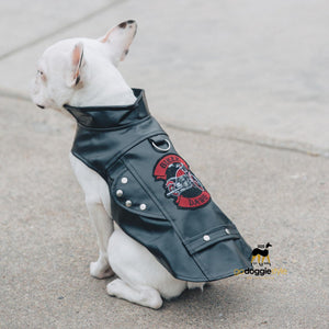 Biker Dawg Faux Leather Motorcycle Dog Jacket - Black - Vintage Embroidery Design - Dog Vest With D-Ring Leash Attachment - XS to 3XL