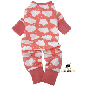 - 100% Cotton CuddlePup Dog Pajamas - Fluffy Clouds Coral - Soft Dog Sleep Wear - Warm Dog Pajamas - Fits Dogs 3 to 25 lbs