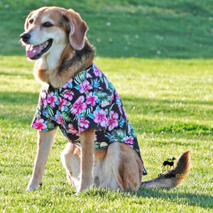 100% Cotton Hawaiian Camp Dog Shirt - Paradise Nights - Spring Summer Dog Shirt - Flower Dog Shirt With Leash Hole - Easy Wash - XS to XL - 3 to 30 lbs