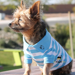 100% Cotton Striped Dog Polo - Blue Niagara And White - Dog Polo Shirt - Two Button Dog Polo - Dog Shirt - Dog Top - Easy Care - XS to 3 XL
