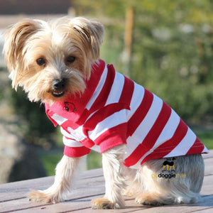 100% Cotton Striped Dog Polo - Flame Scarlet Red And White - Dog Polo Shirt - Two Button Dog Polo - Easy Care - Size XS to 3 XL