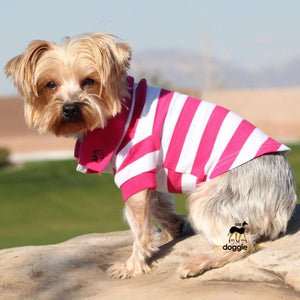 100% Cotton Striped Dog Polo - Pink Yarrow And White - Dog Polo Shirt - Two Button Dog Polo - Easy Care - Size XS to 3 XL