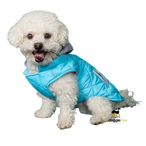 Weekender Dog Quilted Puffer Sweatshirt Hoodie Jacket Vest - Light Blue - Reflective Hoodie - Zip Up Coat with Pockets - Soft Warm Jersey Lining - XS to XL