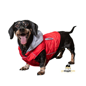Weekender Dog Quilted Puffer Sweatshirt Hoodie Jacket Vest - Red - Reflective Hoodie - Zip Up Coat with Pockets - Soft Warm Jersey Lining - XS to XL