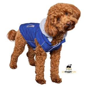 Weekender Dog Quilted Puffer Sweatshirt Hoodie Jacket Vest - Royal Blue - Reflective Hoodie - Zip Up Coat with Pockets - Soft Warm Jersey Lining - XS to XL
