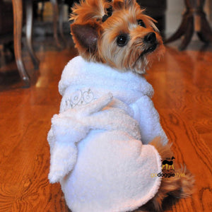 - 100% Combed Cotton Turkish Terrycloth Unisex Dog Bathrobe - White With Silver Tiara Embroidery - Soft Warm Super Absorbent Robe - XS to XL