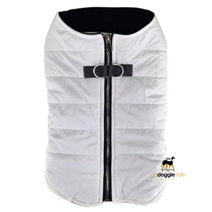 Step In Zip-up Fleece Lined Dog Puffer Vest - White - D-Ring Leash Holder - Warm Fleece Lined Fall Winter Dog Coat Jacket - Sizes XS to XL