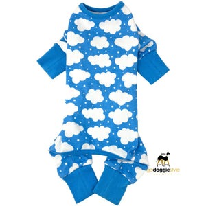 100% Cotton CuddlePup Dog Pajamas - Fluffy Clouds Blue - Soft Dog Sleep Wear - Warm Dog Pajamas - Fits Dogs 3 to 25 lbs