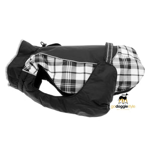 Alpine All-Weather Waterproof Dog Coat - Black & White Plaid - Warm Fleece Lined Winter Dog Coat Jacket - Sizes XS to 5XL - Dogs 3 to 150 lb