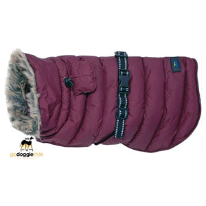 Alpine Extreme Weather Waterproof Puffer Dog Coat - Burgundy - Warm Fleece Lined Winter Dog Coat Jacket - Sizes XS - 5XL - Dogs 3 to 150 lbs