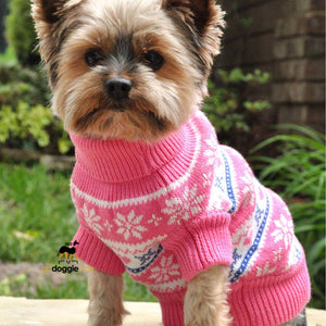 100% Combed Cotton Snowflake and Hearts Dog Sweater - Pink- Fall Winter Shirt - Warm Soft Dog Sweater - Thick Dog Sweater - Size XXS to 3 XL