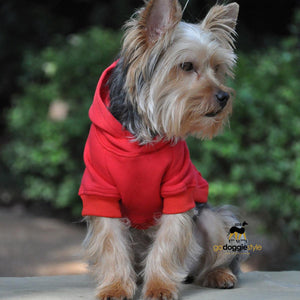 Cotton Rich Flex-fit Dog Hoodie - Red - 95% Cotton - Soft Thick Warm Dog Hoodie - Dog Hoodie With Pocket - Leash Hole - Size XS to 4XL