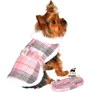 - Fleece Sherpa-lined Warm Dog Harness Coat With Leash - Pink & White Plaid - Fall Winter Warm Dog Coat Jacket - XS - 2XL - 3 to 60 lbs