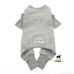Sweet Dreams Embroidered Dog Pajamas - Alloy Gray - Soft Stretchy Dog Sleep Wear - Warm Dog Pajamas - XS to 2XL