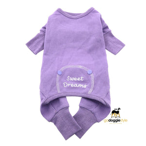 Sweet Dreams Embroidered Dog Pajamas - Lilac - Soft Stretchy Dog Sleep Wear - Warm Dog Pajamas - XS to 2XL