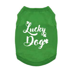 The Lucky Dog Dog Shirt - Emerald Green is a cheerful holiday dog tee for March celebrations, party photos, and boutique dog style.