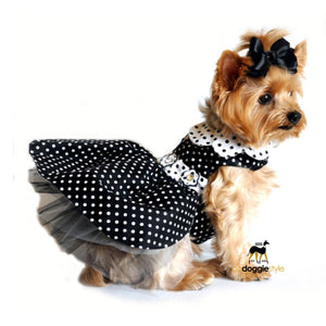 Our Black and White Polka Dot Dog Dress is great year round for parties.