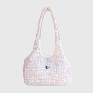 Made from the Chantel Candy tweed fabric with hints of sequin, lined with super soft plush fabric for comfort on the inside, featuring a satin pocket for extra treats using a YKK zipper.