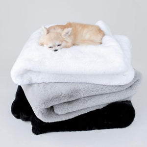 The luxurious Divine Blankets by Hello Doggie are made with only the softest, high-end plush fabric. They allow your pampered pet to sink into complete bliss! pairs well with the divine bed. Machine washable in cold water with mild detergent on a delicate cycle. Air dry or air fluff with no heat. For best results, dry cleaning is recommended. Available in black, white, and dove grey.