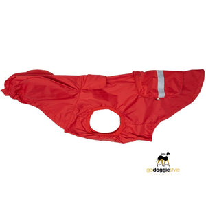 - Dog Windbreaker Raincoat With Mesh Lining & Pocket - Red - Lightweight Packable Waterproof - Leash Access Hole - Prevents Overheating - XS to 3XL