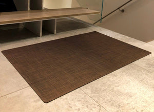 Easy clean Polyester, color safe graphic prints. Repels dirt, spills and mess. Durable, non skid rubber backing is made from recycled rubber tires. Great way to keep your dog contained in one spot - great space saving option for high traffic areas of the home. Also use as a doormat, or area mat to ease stress on feet, back and joints when standing in one spot (kitchen and laundry room). Can also be used as a dog feeder placemat for MED / LRG Artisan Feeders.