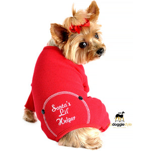 Santa's Lil' Helper Embroidered Christmas Dog Pajamas - Red - Soft Stretchy Dog Sleep Wear - Warm Dog Pajamas - XS to 2XL